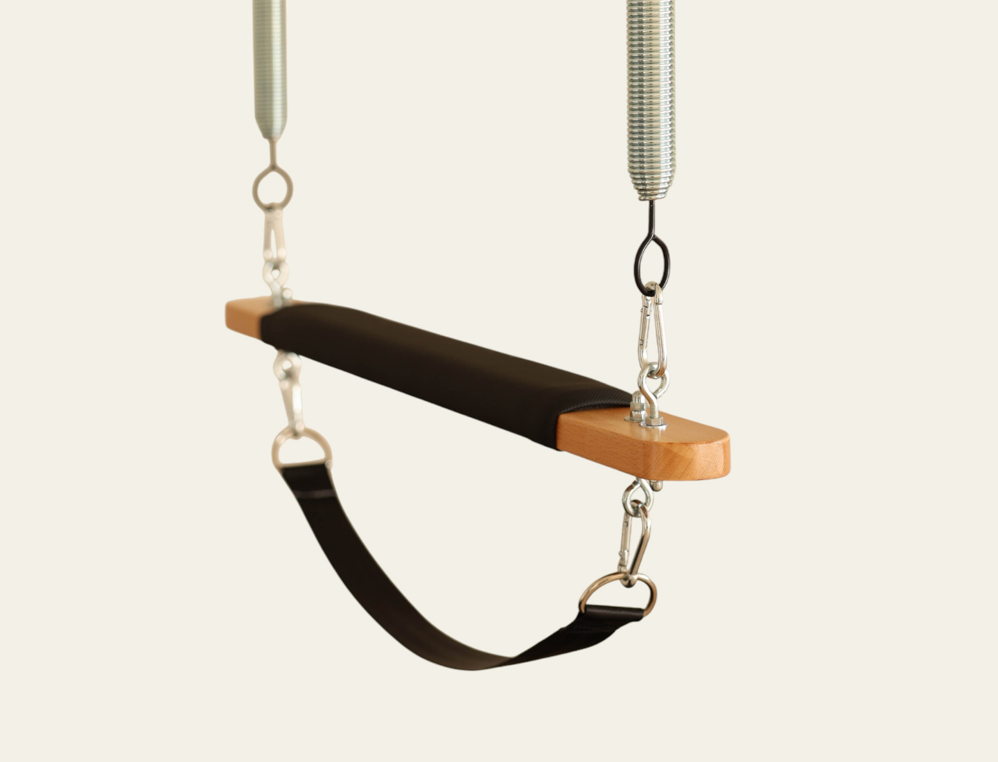 • Foam grips and special non-slip leather coating on the footbar and trapeze swing provide easy grip
