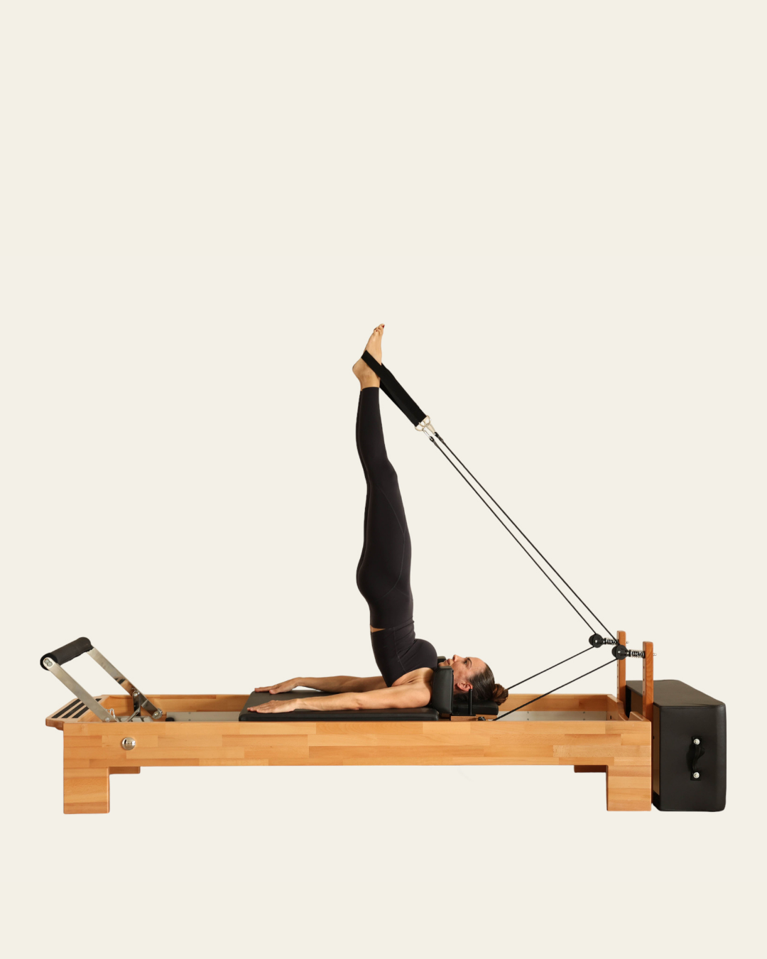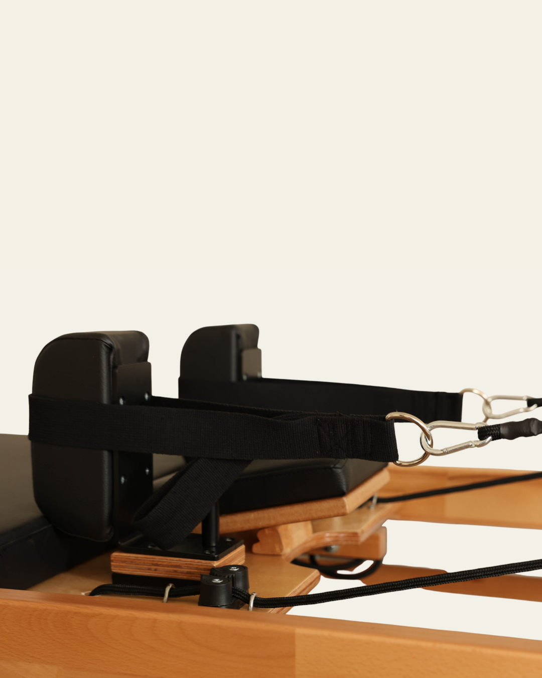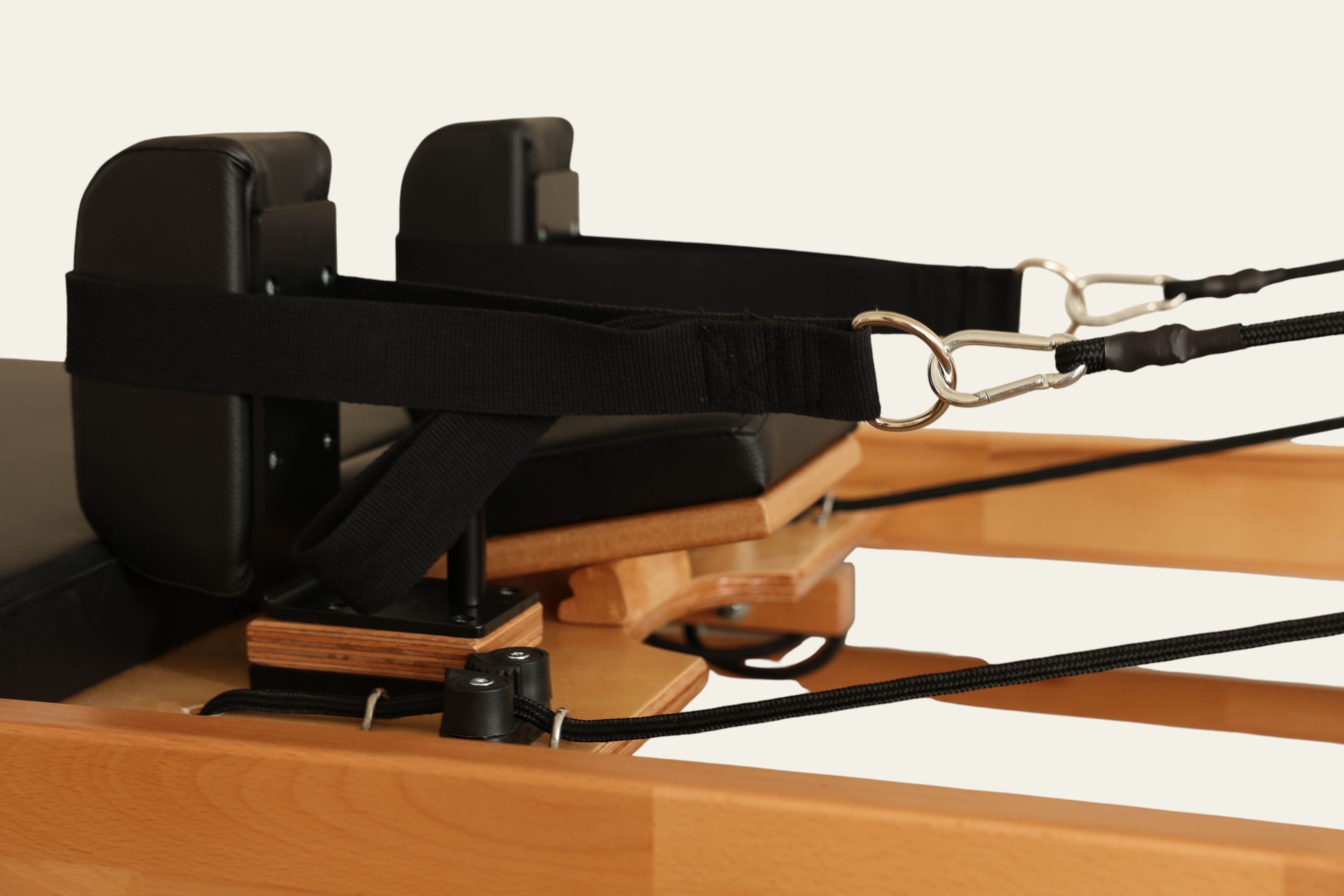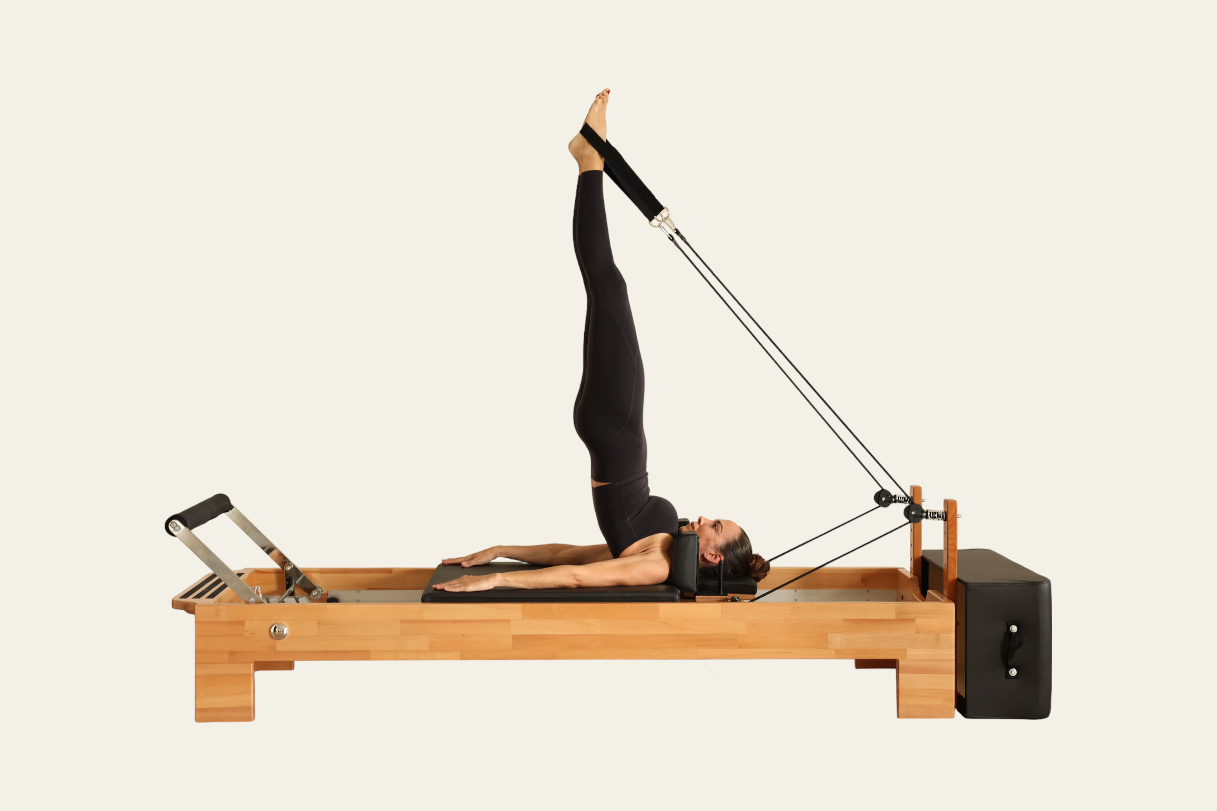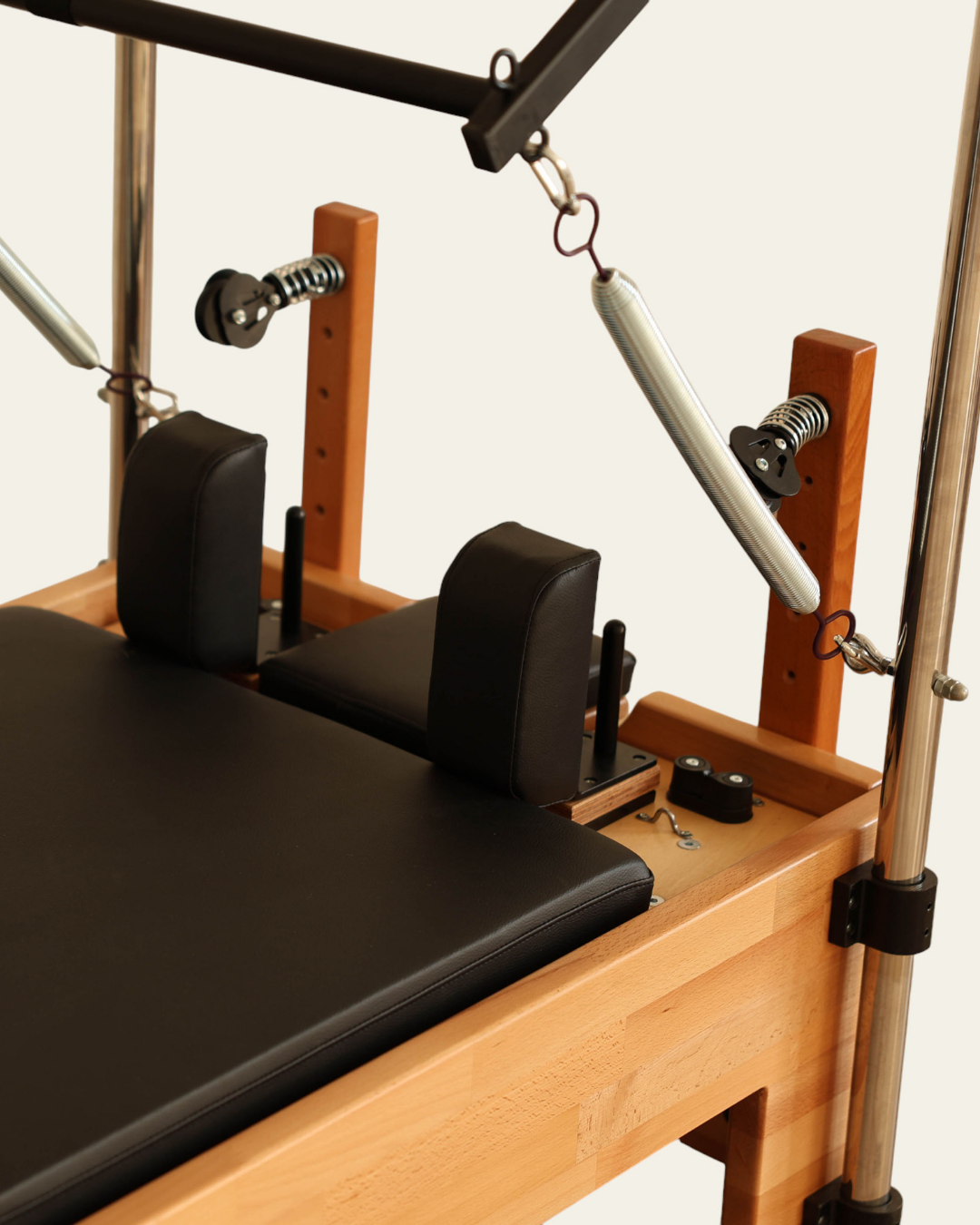 Thanks to the high-density EVA padding, non-slip marine leather upholstery, and mechanism supported by silicone wheels, the Tower Reformer delivers a comfortable, balanced, and smooth Pilates experience.