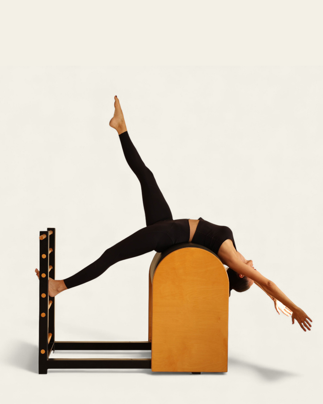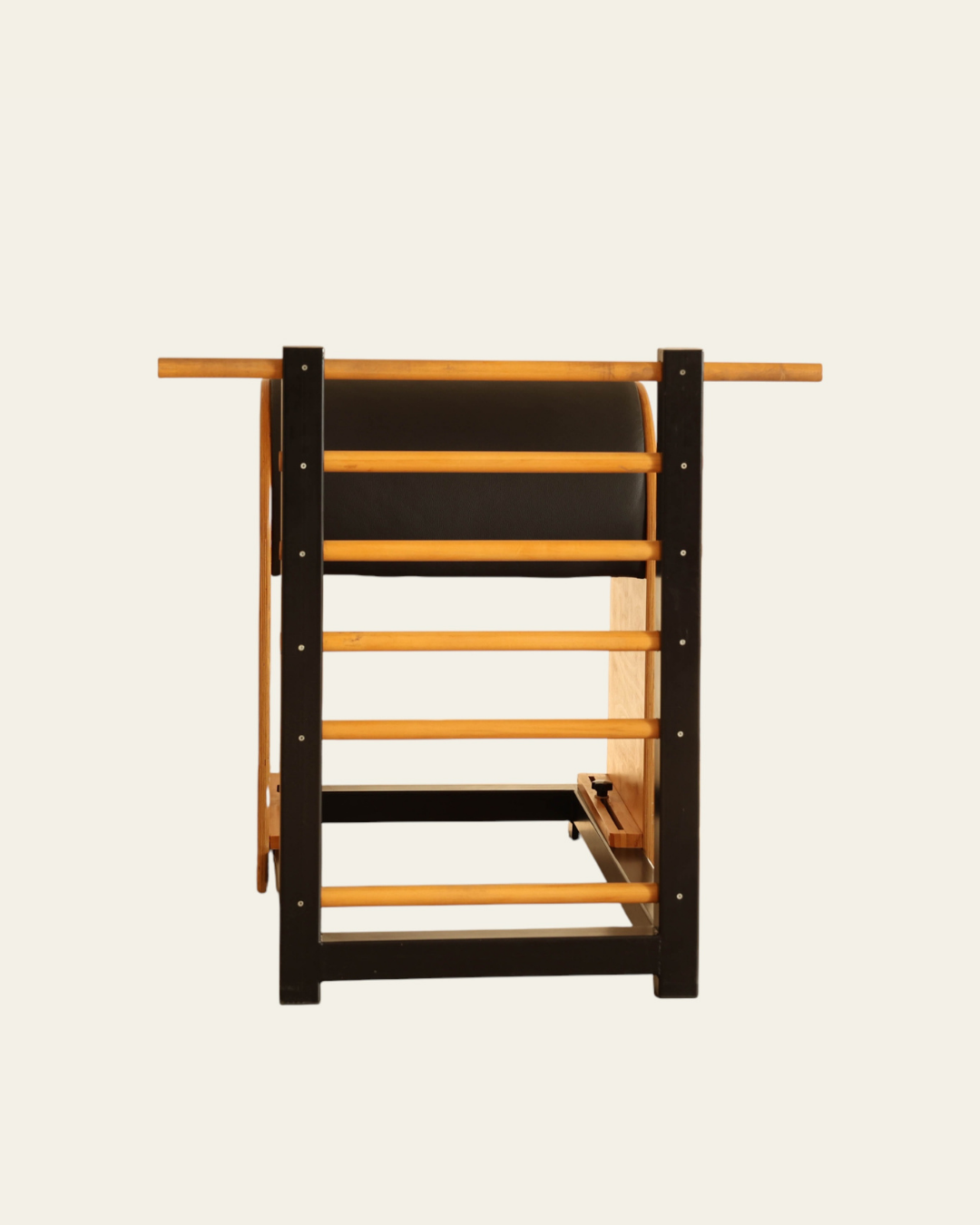 The Ladder Barrel is designed to support flexibility, balance, and control training with its spine-supporting barrel form and stable step structure.